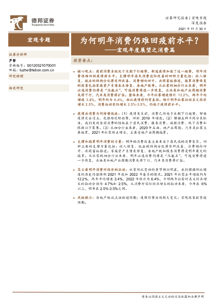 德邦证券:为何明年消费仍难回疫前水平?——宏观年度展望之消费篇.pdf