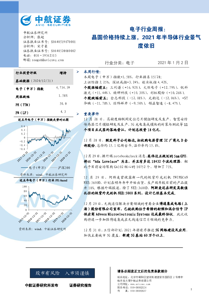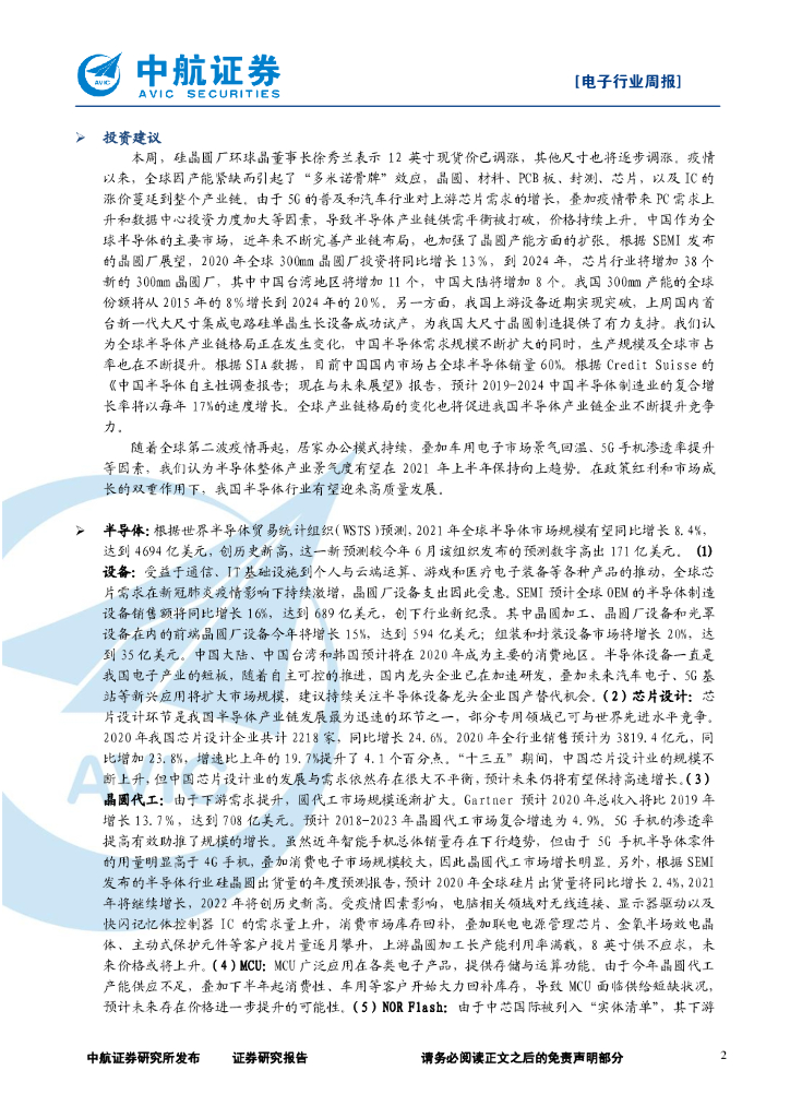 中航证券:电子行业周报:晶圆价格持续上涨,2021年半导体行业景气度依旧.pdf
