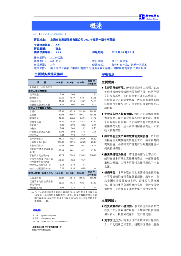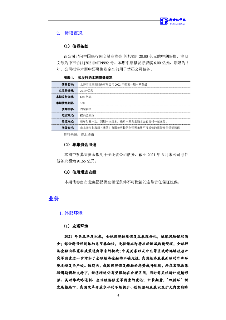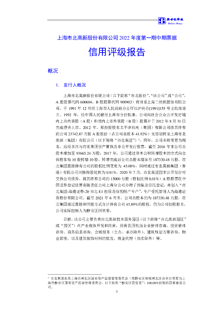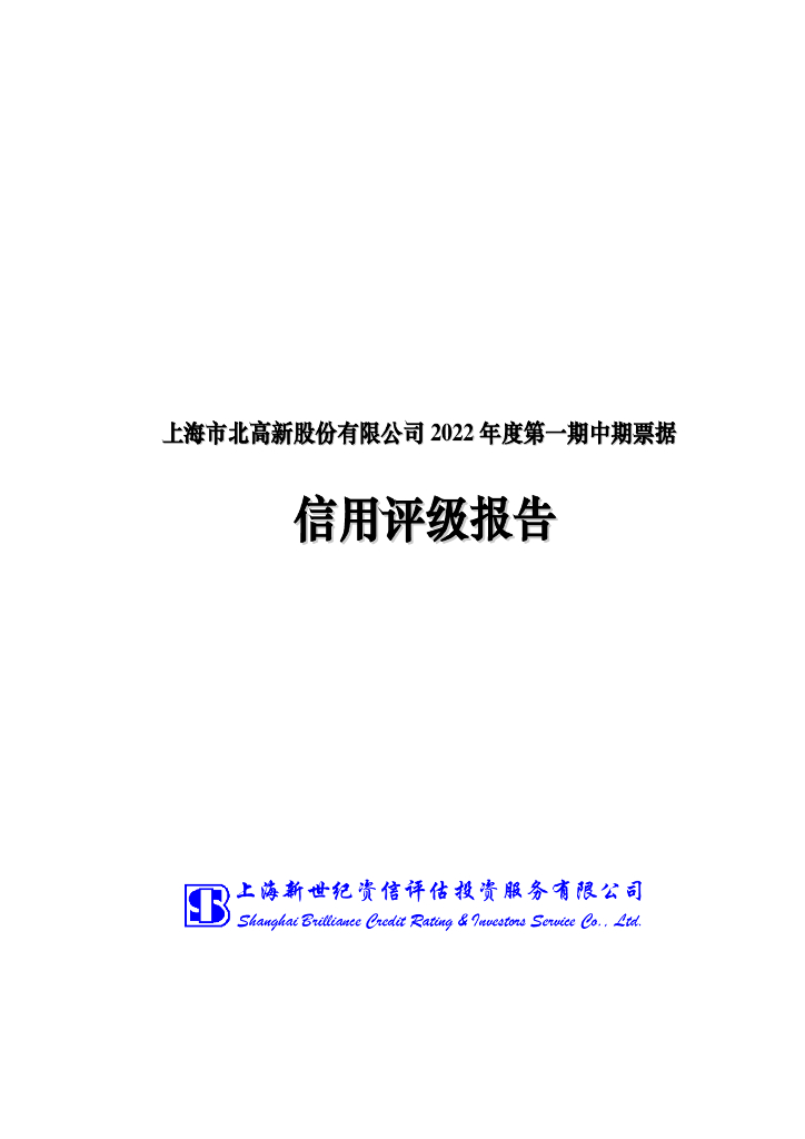 新世纪:上海市北高新股份有限公司2022年度第一期中期票据信用评级报告.pdf