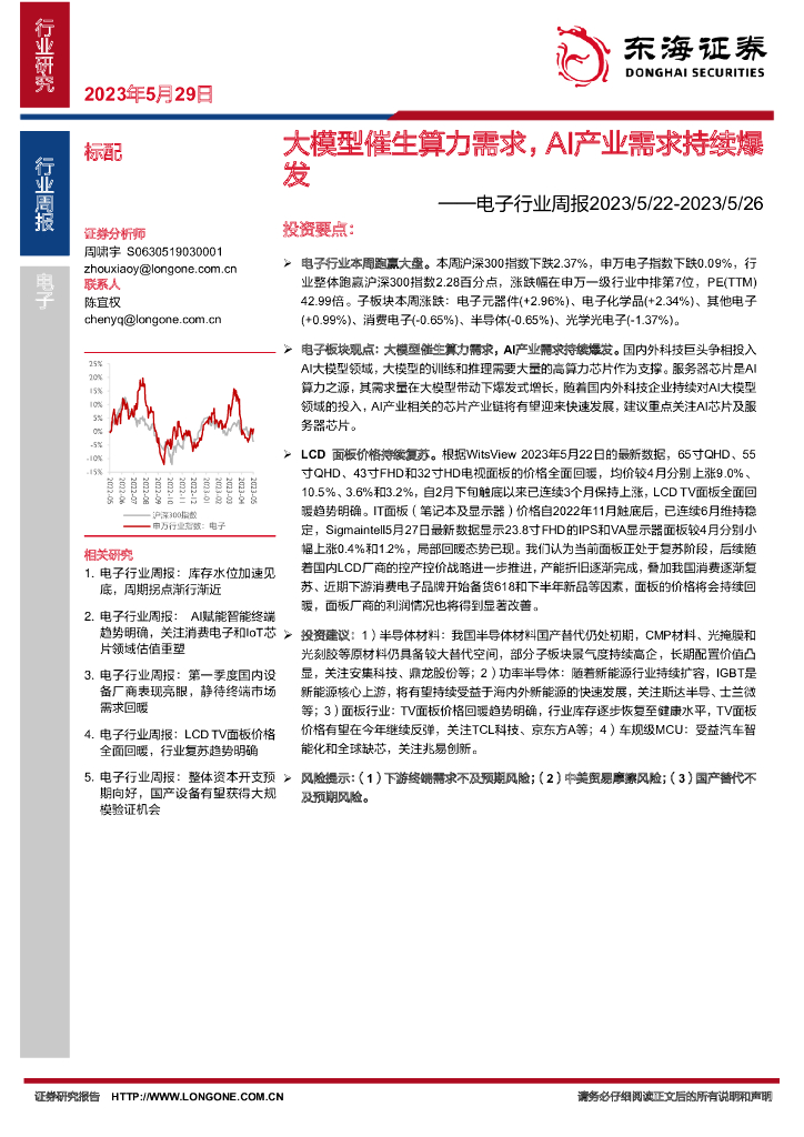 东海证券:电子行业周报:大模型催生算力需求,AI产业需求持续爆发.pdf
