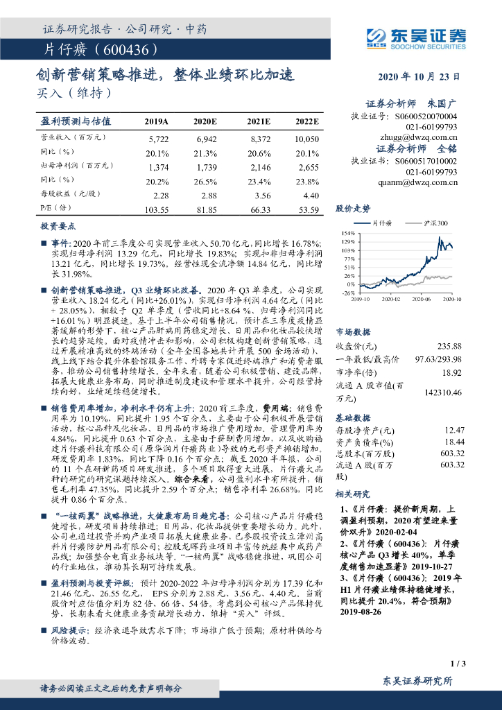 东吴证券:片仔癀(600436)-创新营销策略推进,整体业绩环比加速.pdf