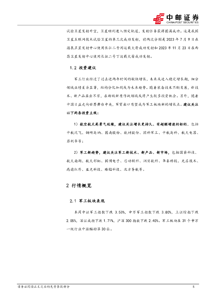 中邮证券:国防军工行业报告:中国商飞交付第三架C919,卫星互联网技术试验卫星第三次成功发射.pdf