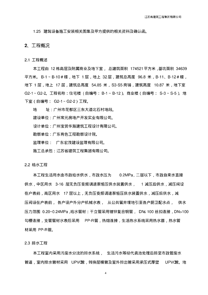 [广东]广州花都高层住宅楼给排水消防工程施工方案.pdf