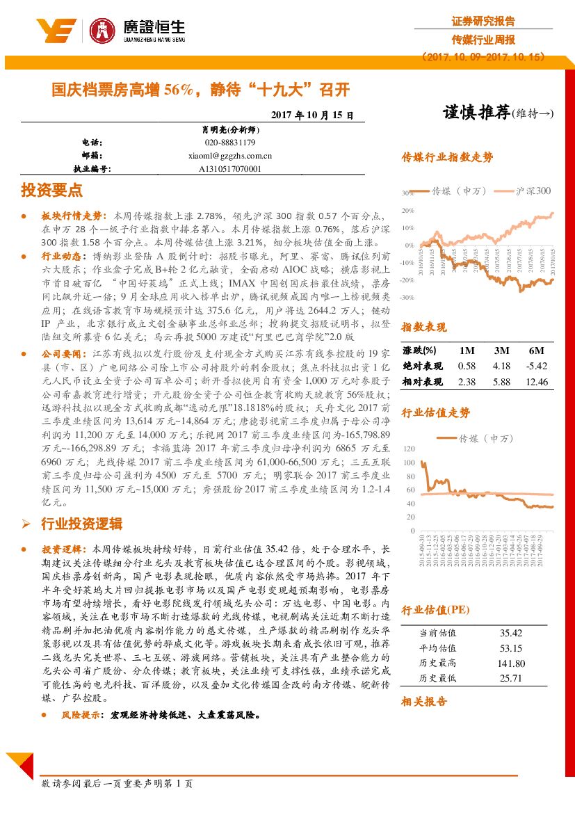 广证恒生证券研究所:传媒行业周报:国庆档票房高增56%,静待“十九大”召开.pdf