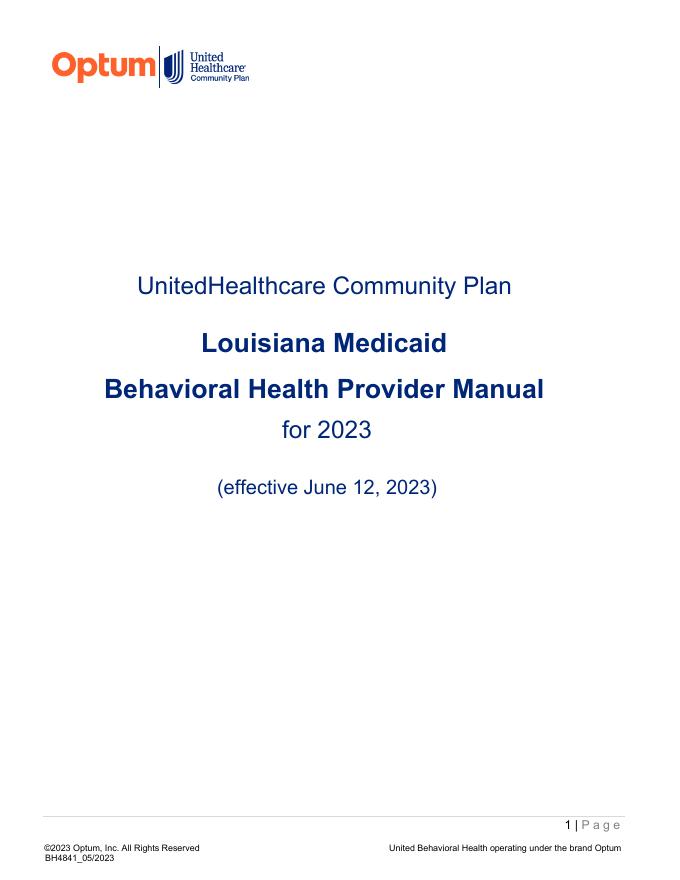 联合健康医疗社区计划路易斯安那州医疗补助行为健康提供商手册.pdf