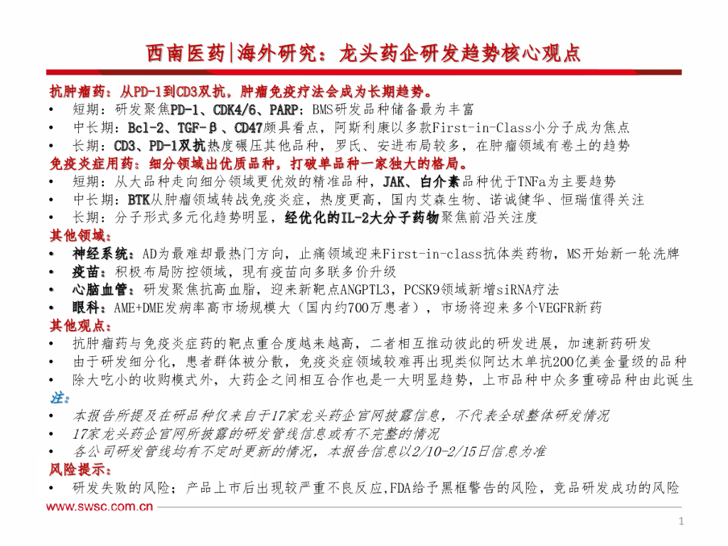 西南证券:海外医药2019年报总结2:公司研发管线梳理肿瘤、免疫研发协同效应:短期PD-1,长期双抗.pdf