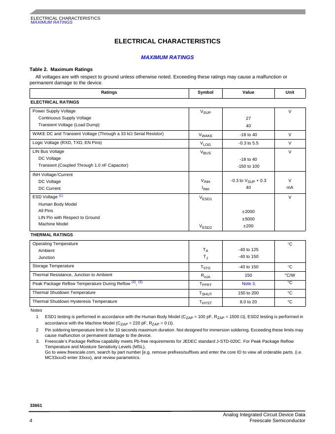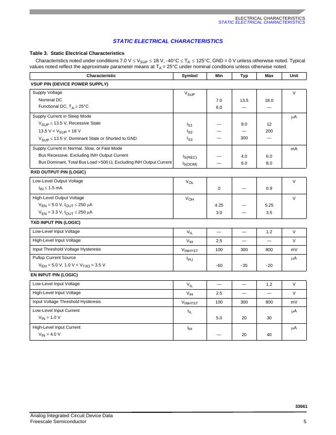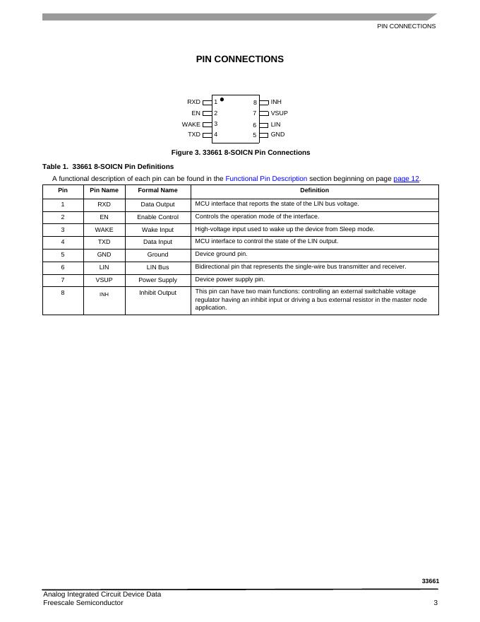 FREESCALE SEMICONDUCTOR Local Area Network (LIN) Enhanced Physical Interface with Selectable Slew Rate 33661 数据手册.pdf