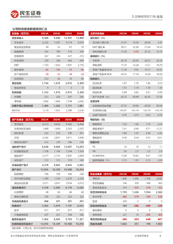 民生证券:久立特材(002318)-2024年三季报点评:Q3业绩超预期,高端产能加速释放.pdf