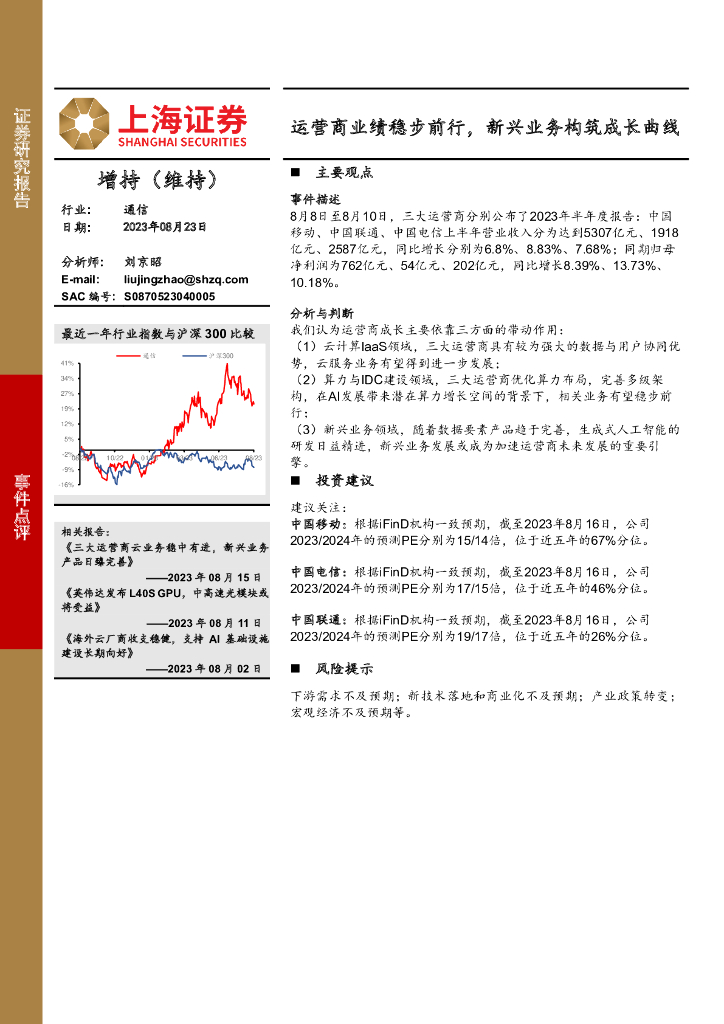 上海证券:通信事件点评:运营商业绩稳步前行,新兴业务构筑成长曲线.pdf