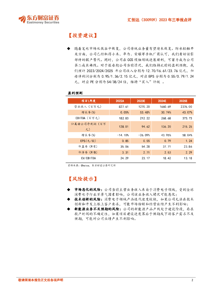 东方财富证券:汇创达(300909)-2023年三季报点评:笔电回暖助Q3业绩改善,防水开关与CSS模组蓄势待发.pdf