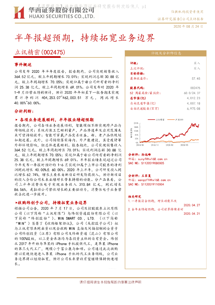 华西证券:立讯精密(002475)-半年报超预期,持续拓宽业务边界.pdf