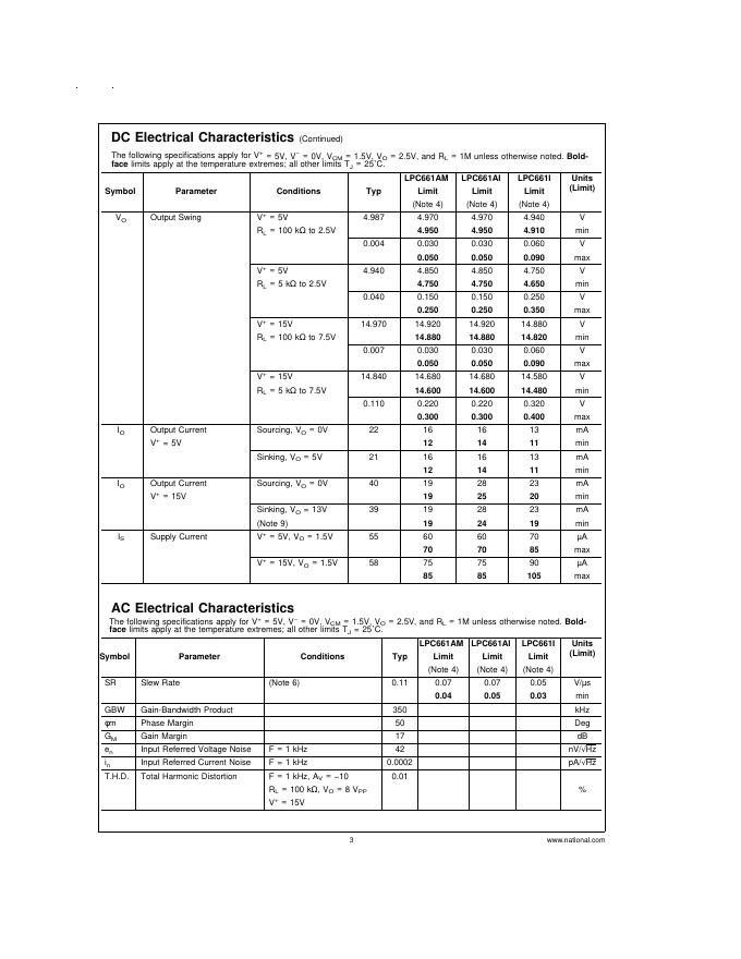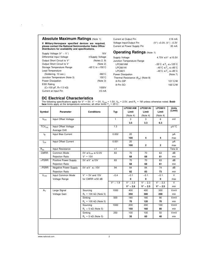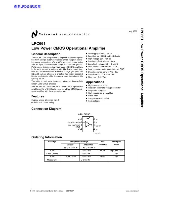National Semiconductor LPC661 Low Power CMOS Operational Amplifier 数据手册.pdf