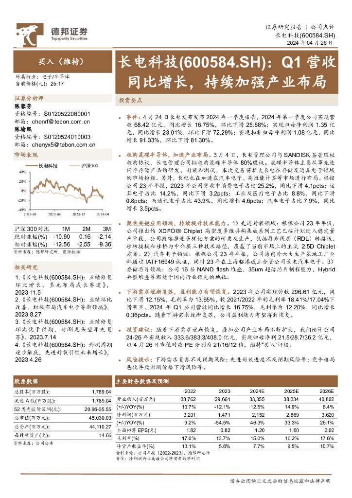 德邦证券:长电科技(600584)-Q1营收同比增长,持续加强产业布局.pdf