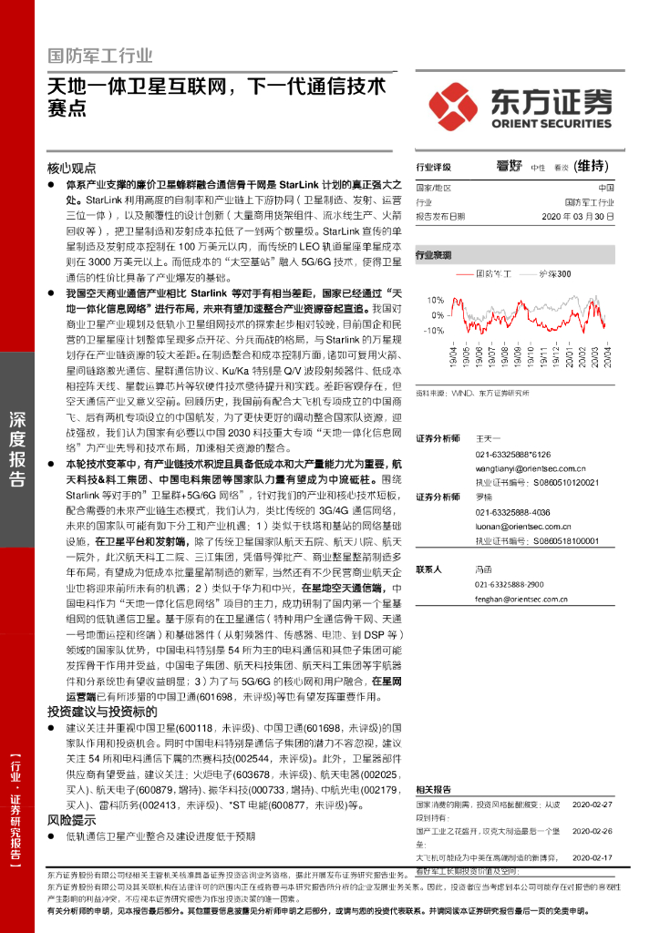 东方证券:国防军工行业深度报告:天地一体卫星互联网,下一代通信技术赛点.pdf