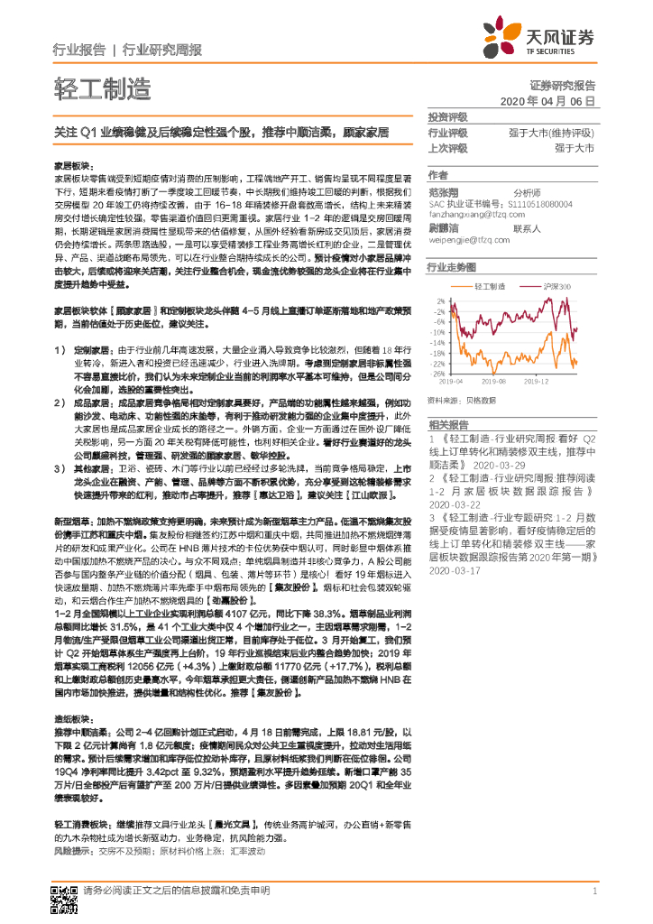 天风证券:轻工制造行业研究周报:关注Q1业绩稳健及后续稳定性强个股,推荐中顺洁柔,顾家家居.pdf