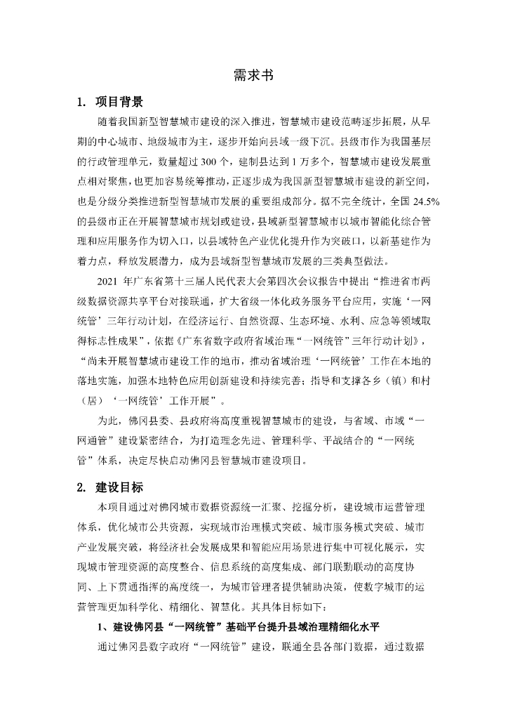 佛冈县城市管理和综合执法局佛冈县智慧城市建设项目(一期)采购需求公告附件招标文件.pdf