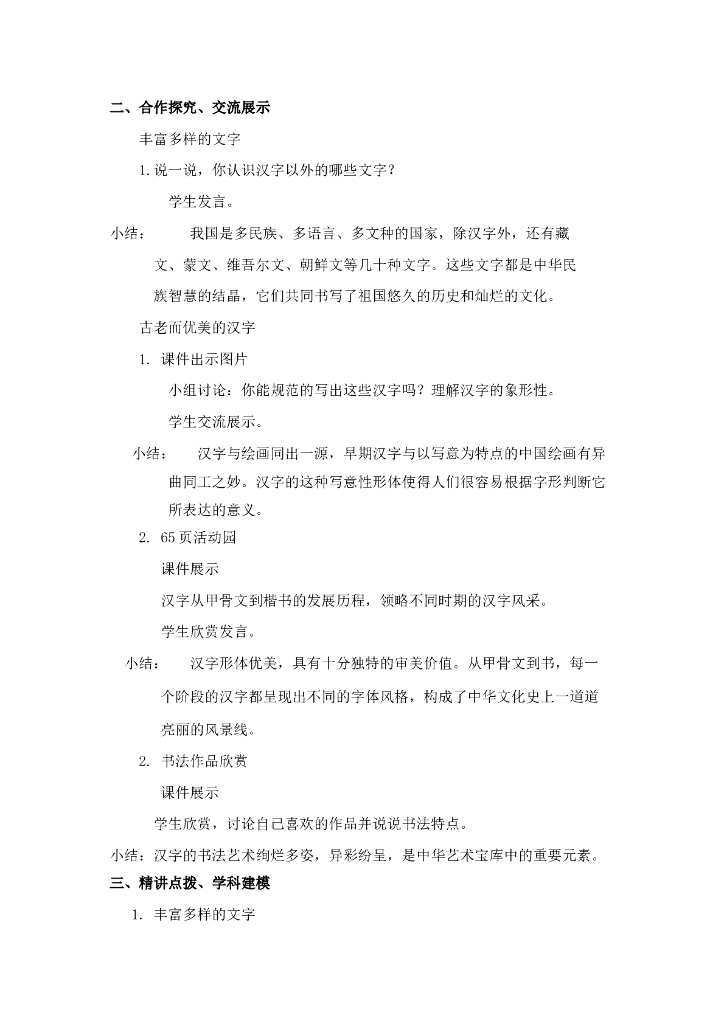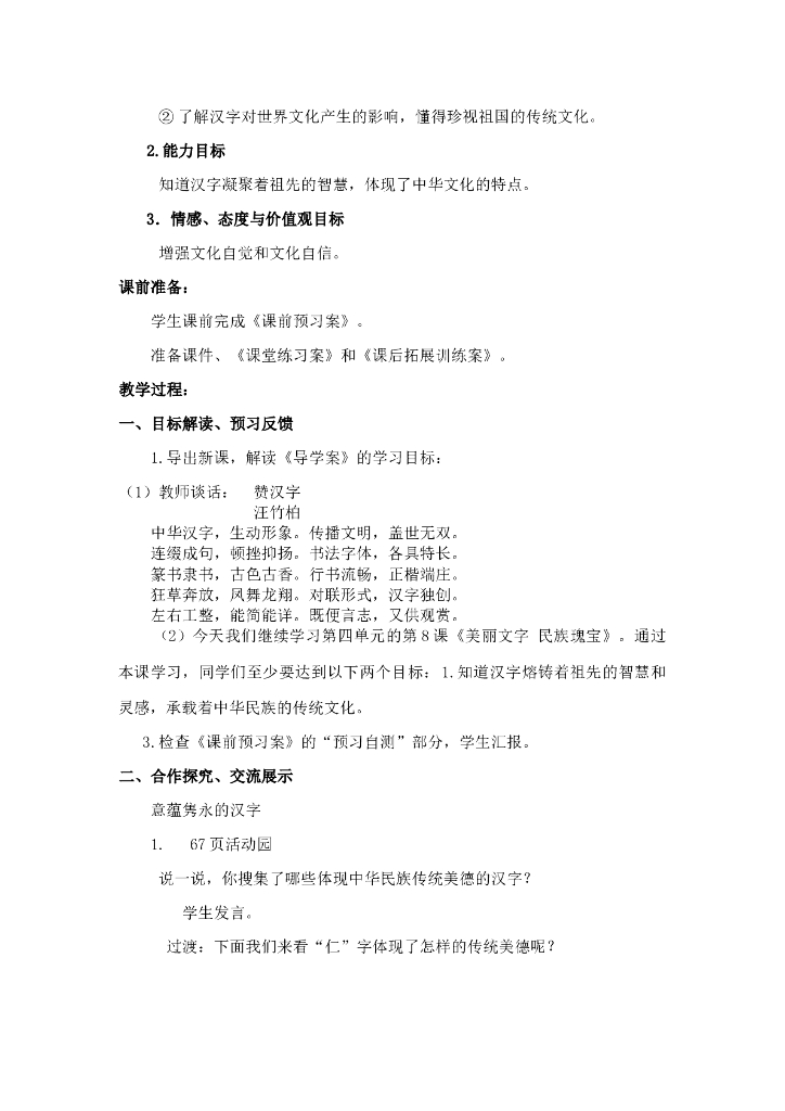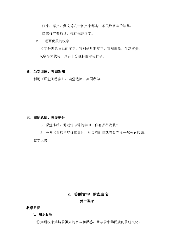 2021五年级上册 人教版小学道德与法治4.1 美丽文字 民族瑰宝 1-2课时 非表格.doc