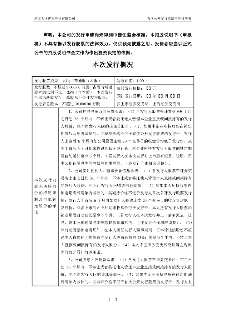 浙江大洋世家股份有限公司上交所主板IPO上市招股说明书.pdf