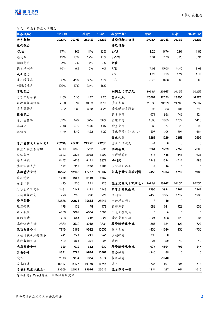 国海证券:中集车辆(301039)-2024年三季报点评:2024年Q3毛利率环比回升,国内销量同比提升,公司释放盈利弹性值得期待.pdf
