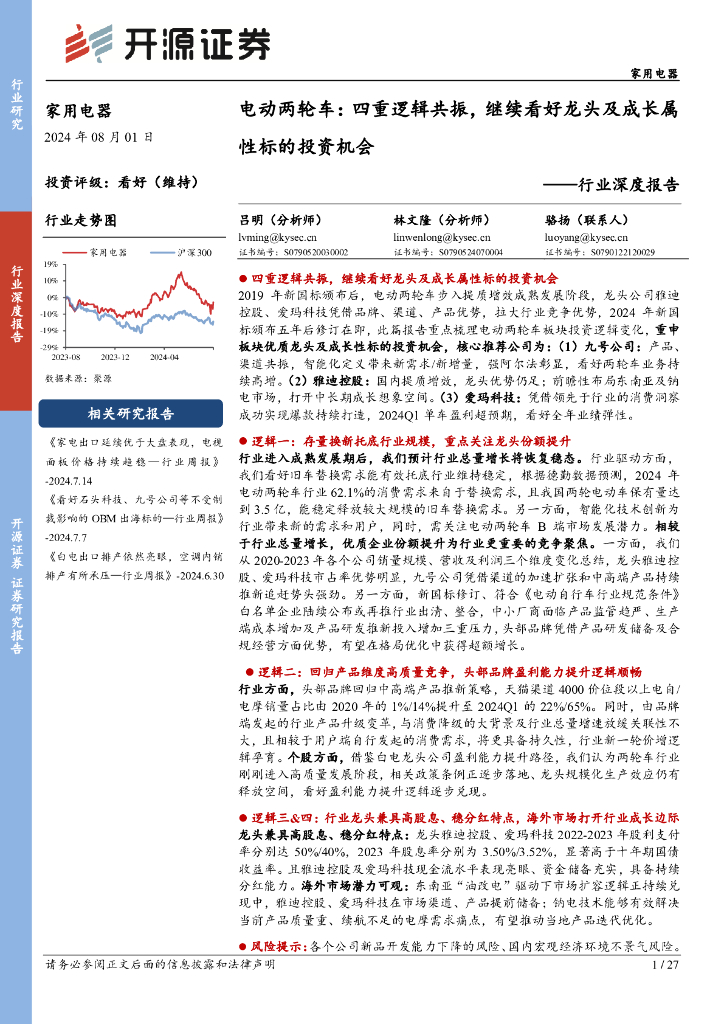 开源证券:家用电器行业深度报告:电动两轮车:四重逻辑共振,继续看好龙头及成长属性标的投资机会.pdf