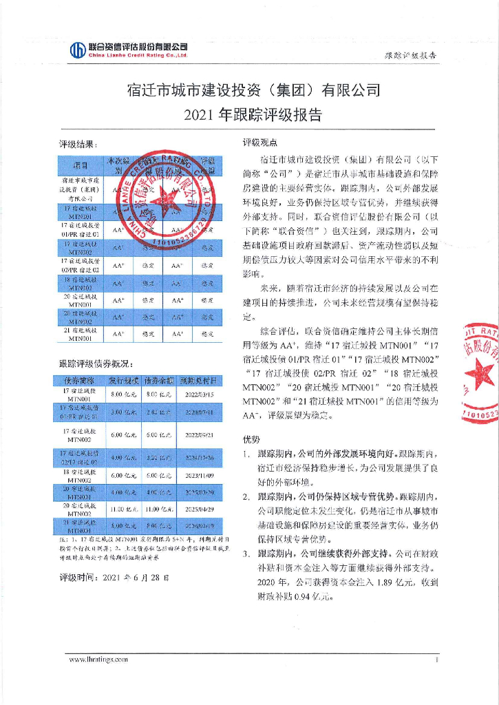 联合资信:宿迁市城市建设投资(集团)有限公司2021年跟踪评级报告.pdf