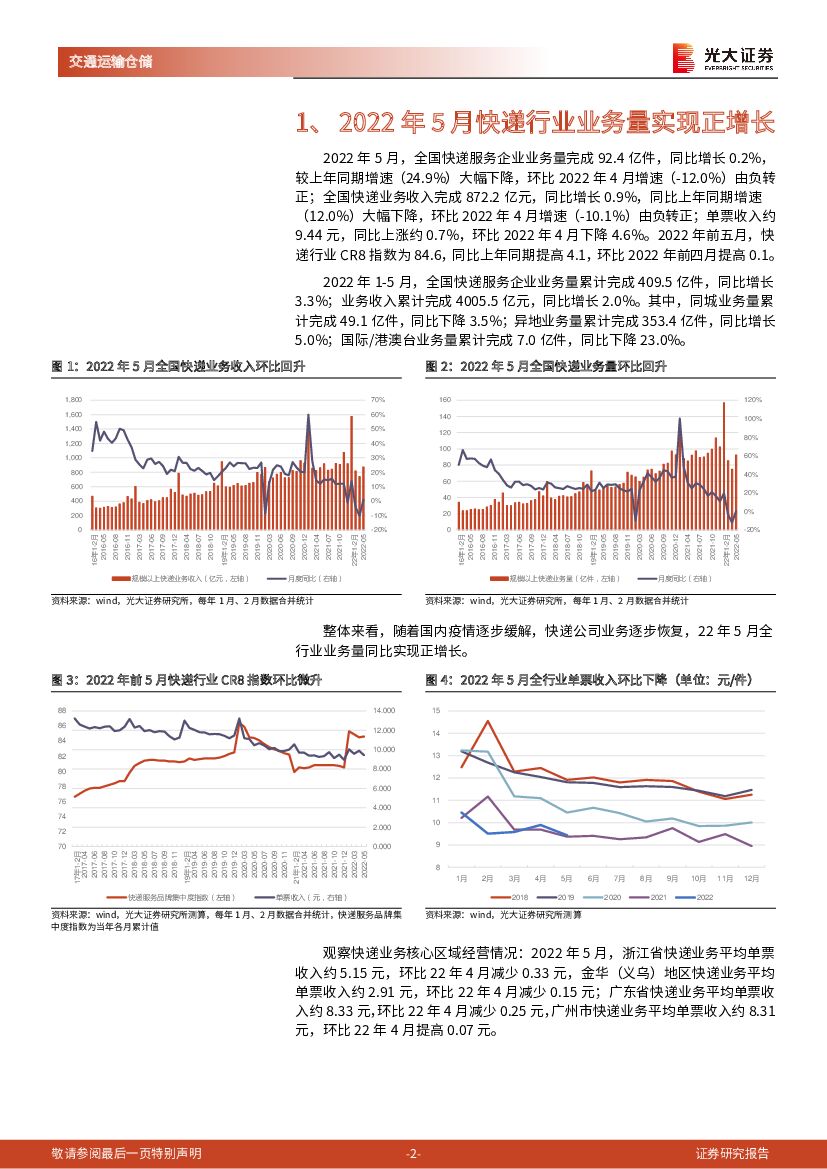 光大证券:快递行业2022年5月经营数据点评:实物网购社零占比提升,快递业务量快速恢复.pdf