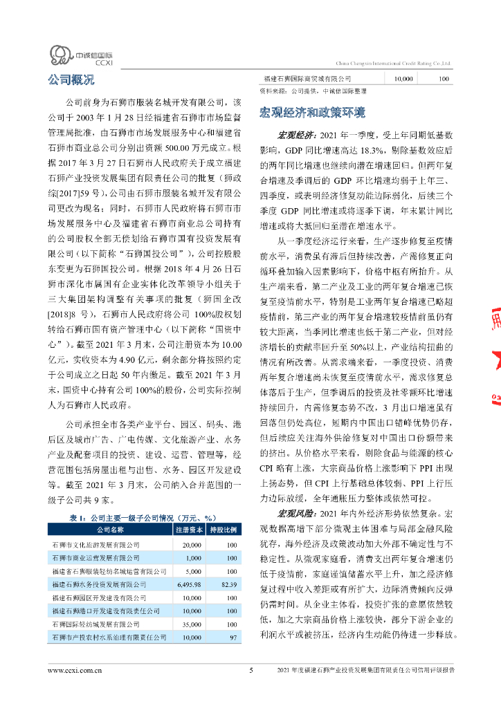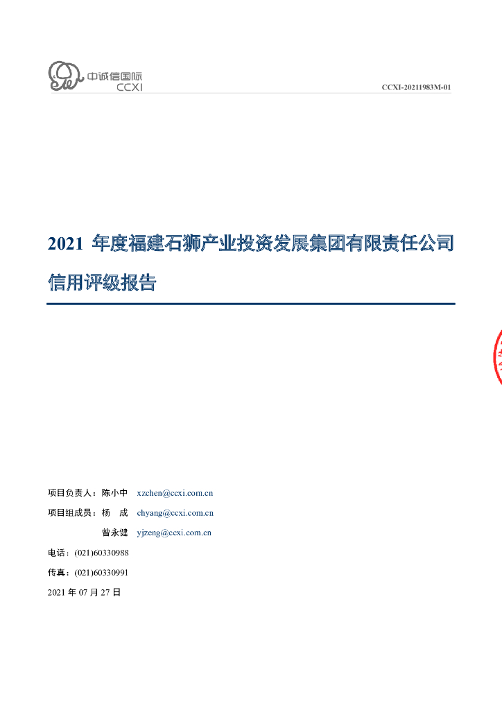 中诚信:福建石狮产业投资发展集团有限责任公司主体信用评级报告.pdf