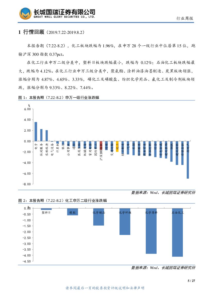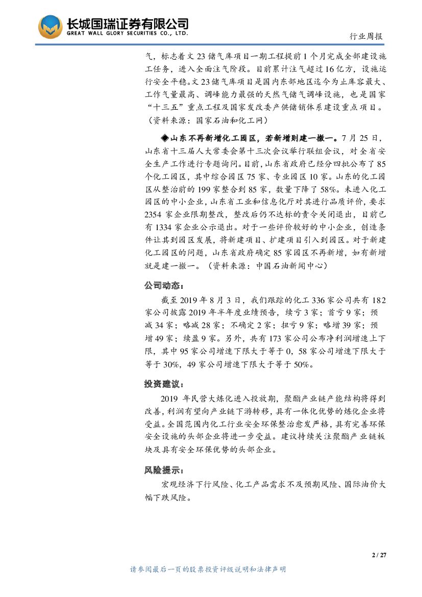长城国瑞证券:化工行业双周报2019年第15期(总第15期):2019年上半年化工行业增加值同比增长4.6%,山东明确化工园区数量不再增加.pdf