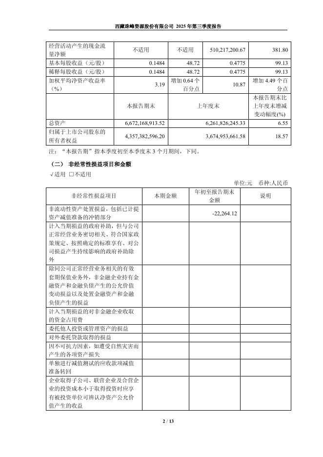 600338-西藏珠峰:2025年第三季度报告.pdf