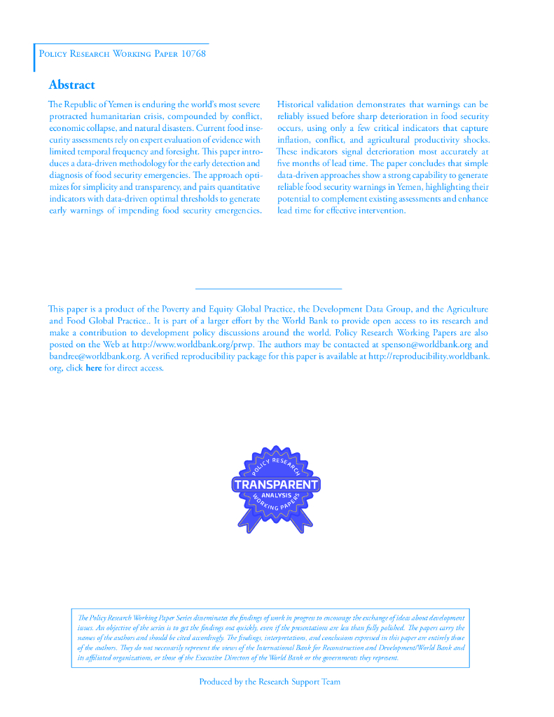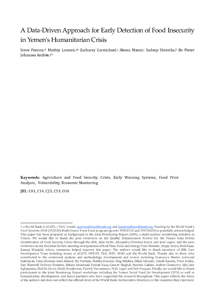 世界银行:也门人道主义危机中早期发现粮食不安全的数据驱动方法(英文版).pdf