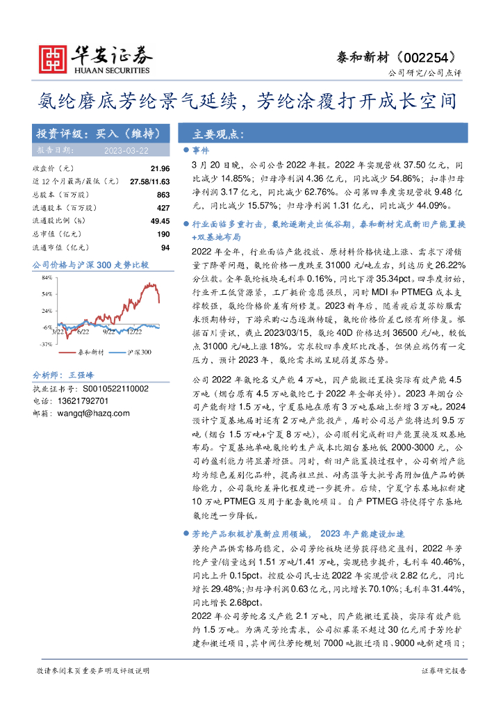 华安证券:泰和新材(002254)-氨纶磨底芳纶景气延续,芳纶涂覆打开成长空间.pdf