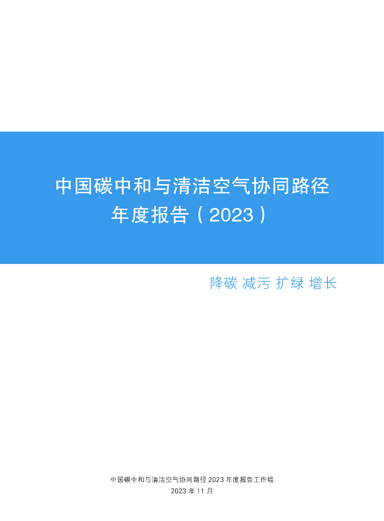 清华大学碳中和研究院:中国碳中和与清洁空气协同路径2023——降碳 减污 扩绿 增长.pdf