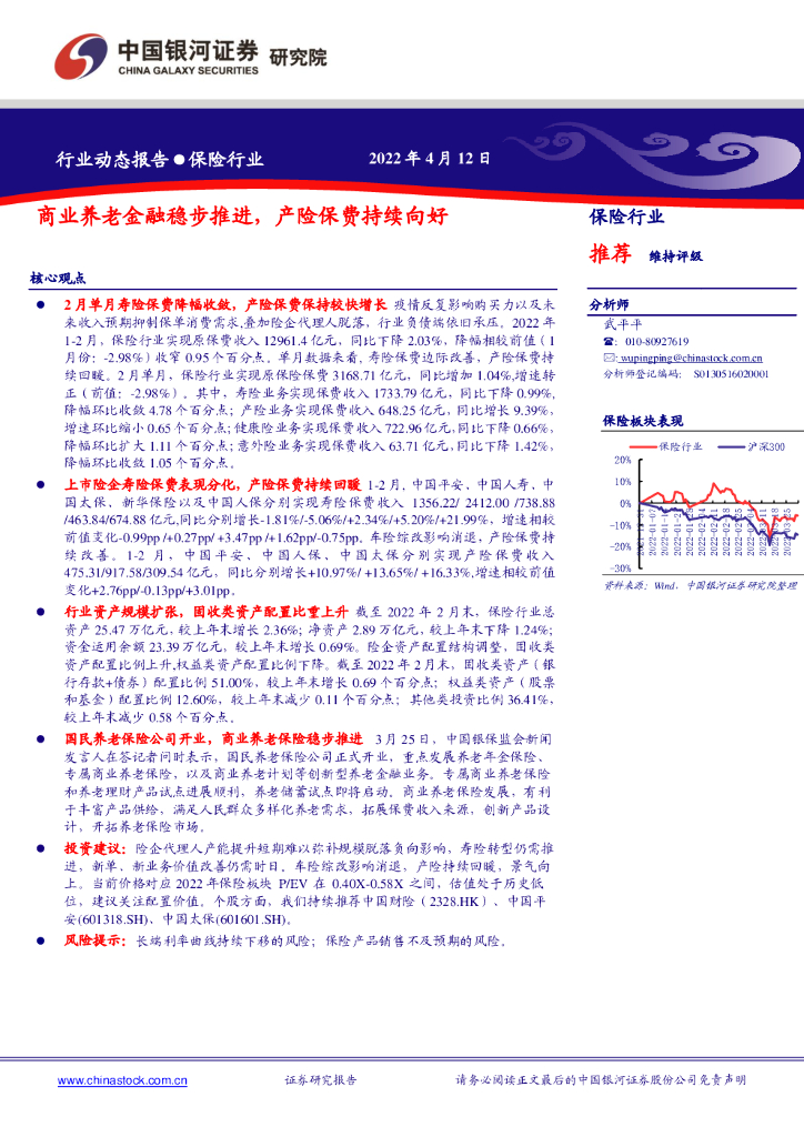 中国银河:保险行业动态报告:商业养老金融稳步推进,产险保费持续向好.pdf