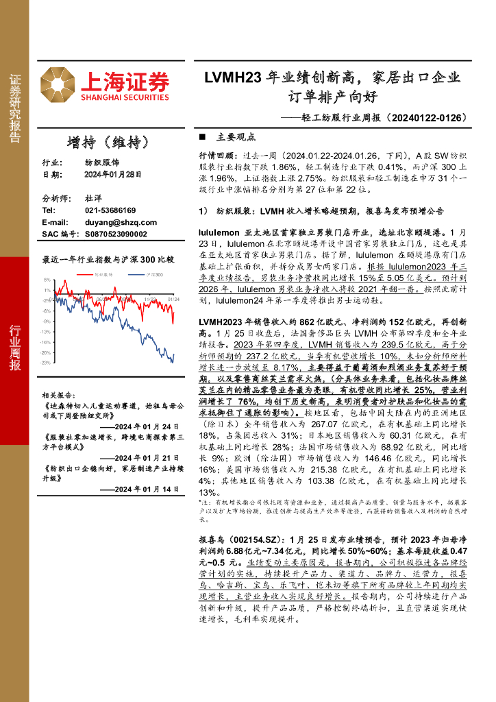 上海证券:轻工纺服行业周报:LVMH23年业绩创新高,家居出口企业订单排产向好.pdf