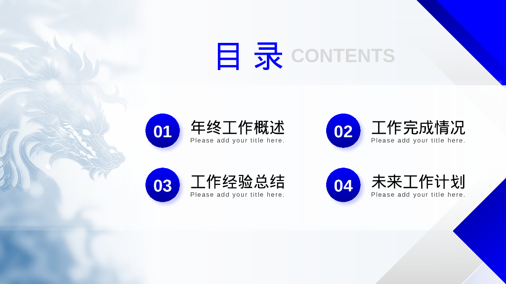 蓝色 中国龙 的年终工作总结 PPT模板.ppt