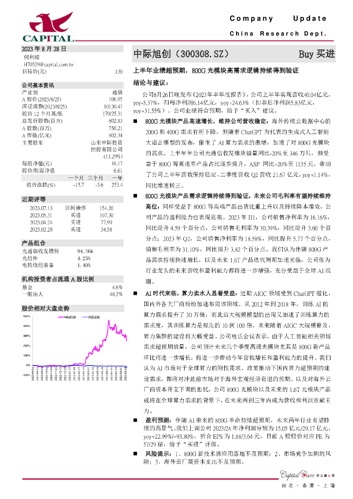群益证券:中际旭创(300308)-上半年业绩超预期,800G光模块高需求逻辑持续得到验证.pdf