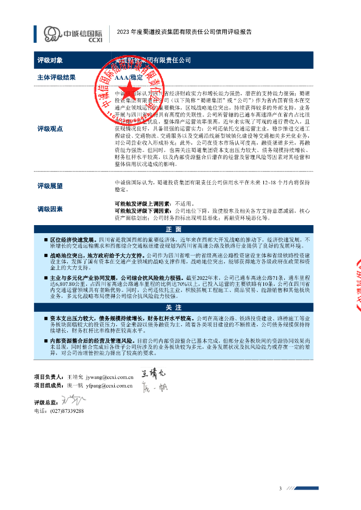 中诚信:蜀道投资集团有限责任公司主体信用评级报告及跟踪评级安排.pdf