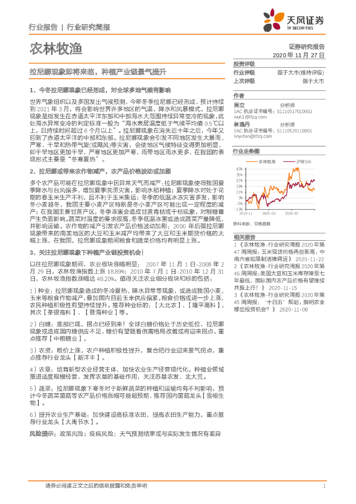 天风证券:农林牧渔行业研究简报:拉尼娜现象即将来临,种植产业链景气提升.pdf