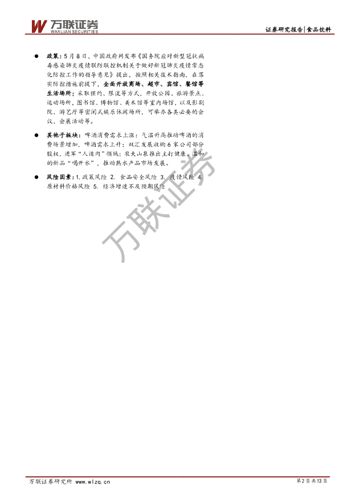 万联证券:食品饮料行业周观点报告:政策助力餐饮等消费加速恢复,关注可选边际修复.pdf
