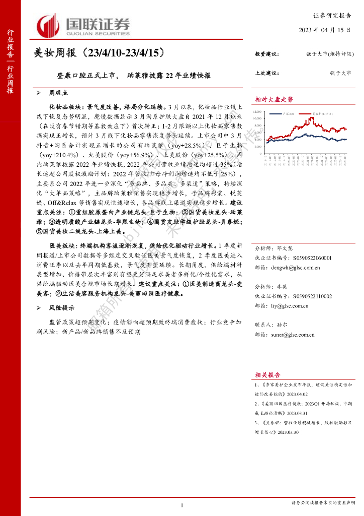 国联证券:美妆周报:登康口腔正式上市,珀莱雅披露22年业绩快报.pdf
