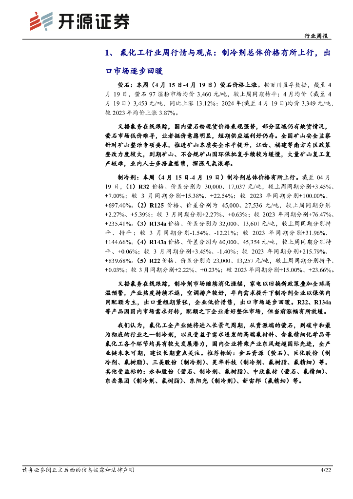 开源证券:氟化工行业周报:制冷剂出口市场逐步回暖,看好维修市场旺季行情到来.pdf