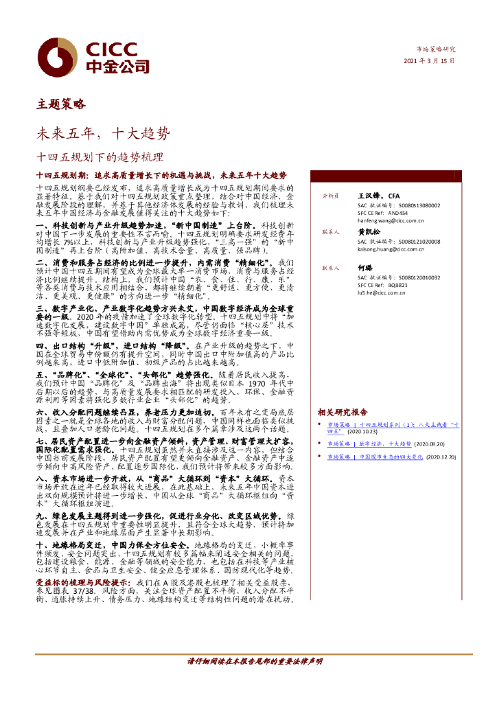 中金公司:十四五规划下的趋势梳理:未来五年,十大趋势.pdf