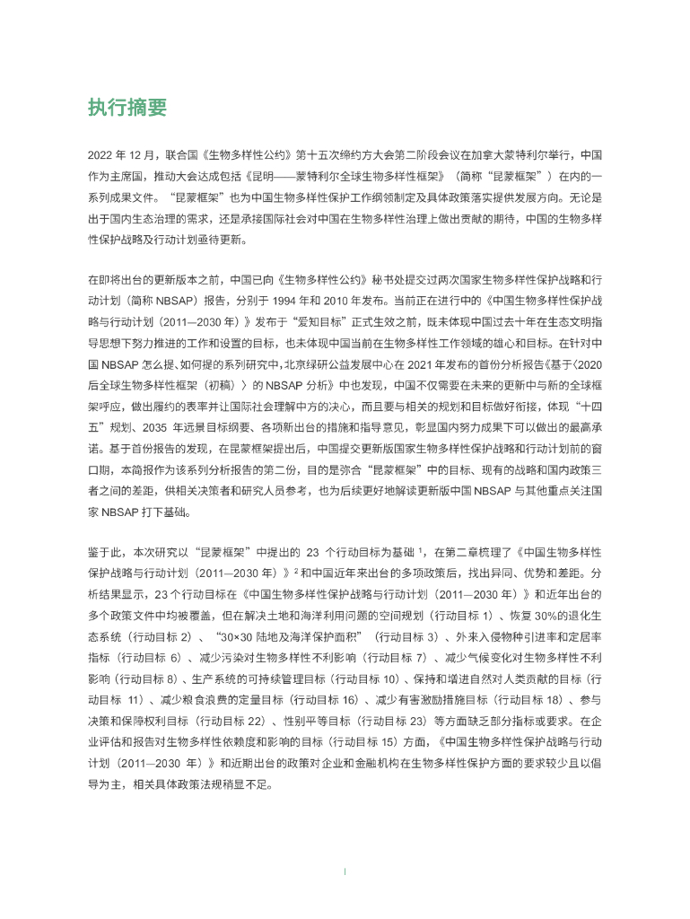 北京绿研公益发展中心(GHUB):2023年展雄心促落实:“昆蒙框架”下的《中国生物多样性保护战略与行动计划》分析与建议简报.pdf