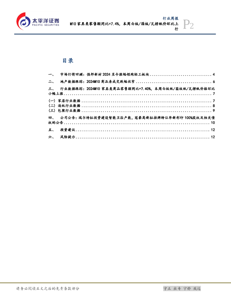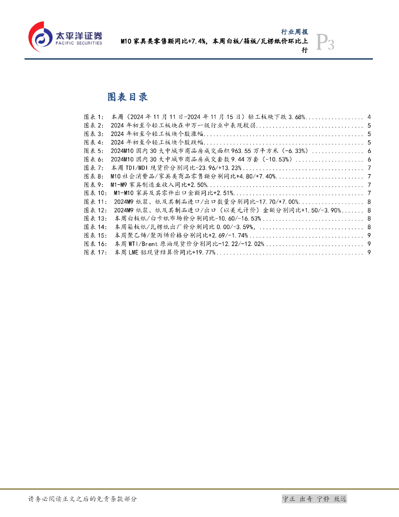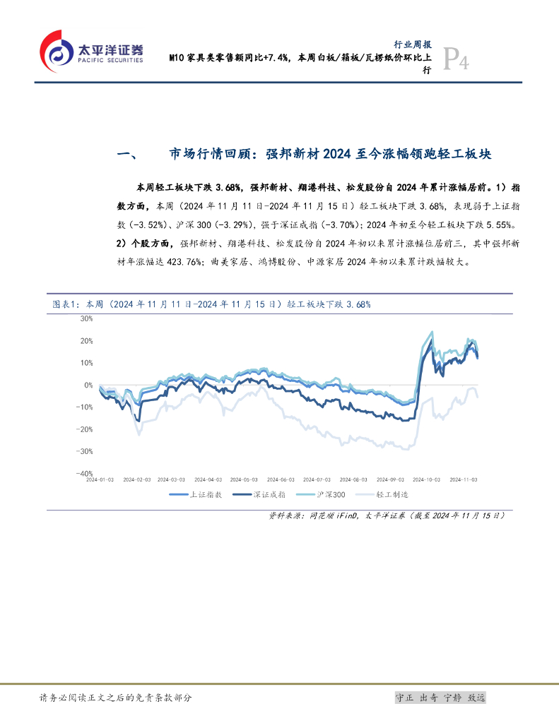 太平洋证券:轻工制造行业周报:M10家具类零售额同比+7.4%,本周白板/箱板/瓦楞纸价环比上行.pdf