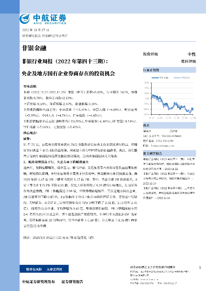 中航证券:非银行业周报(2022年第四十三期):央企及地方国有企业券商存在的投资机会.pdf