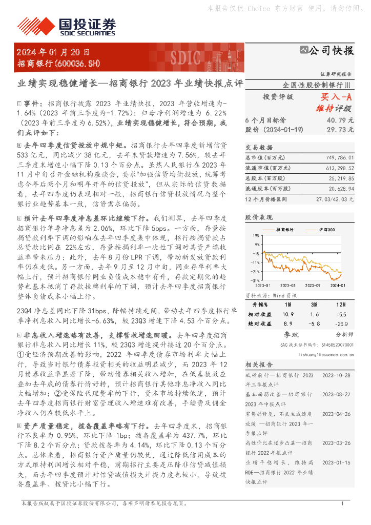 国投证券:招商银行2023年业绩快报点评:业绩实现稳健增长.pdf