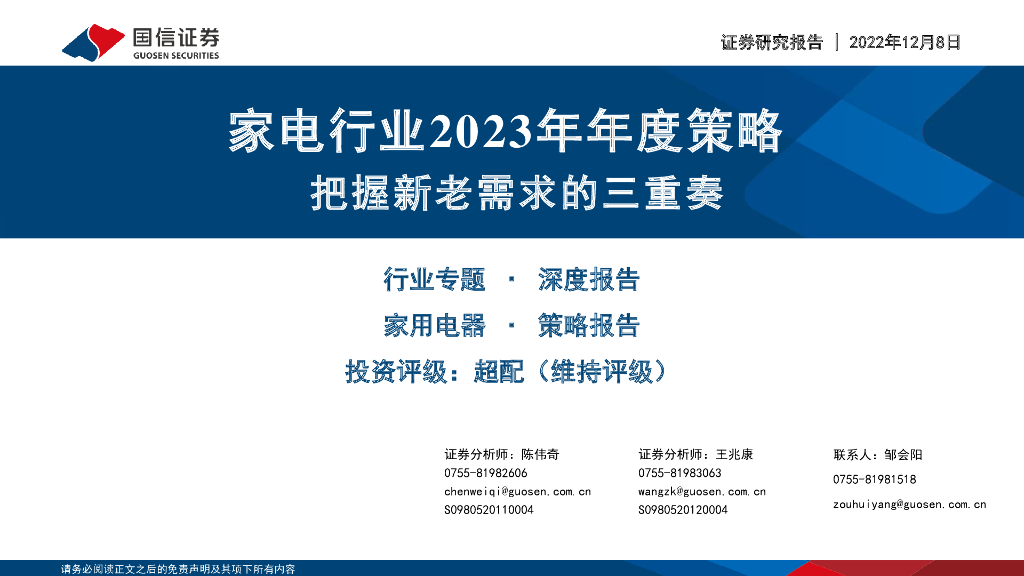 国信证券:家电行业2023年年度策略:把握新老需求的三重奏.pdf