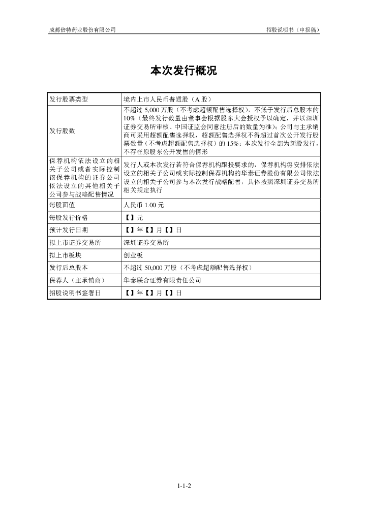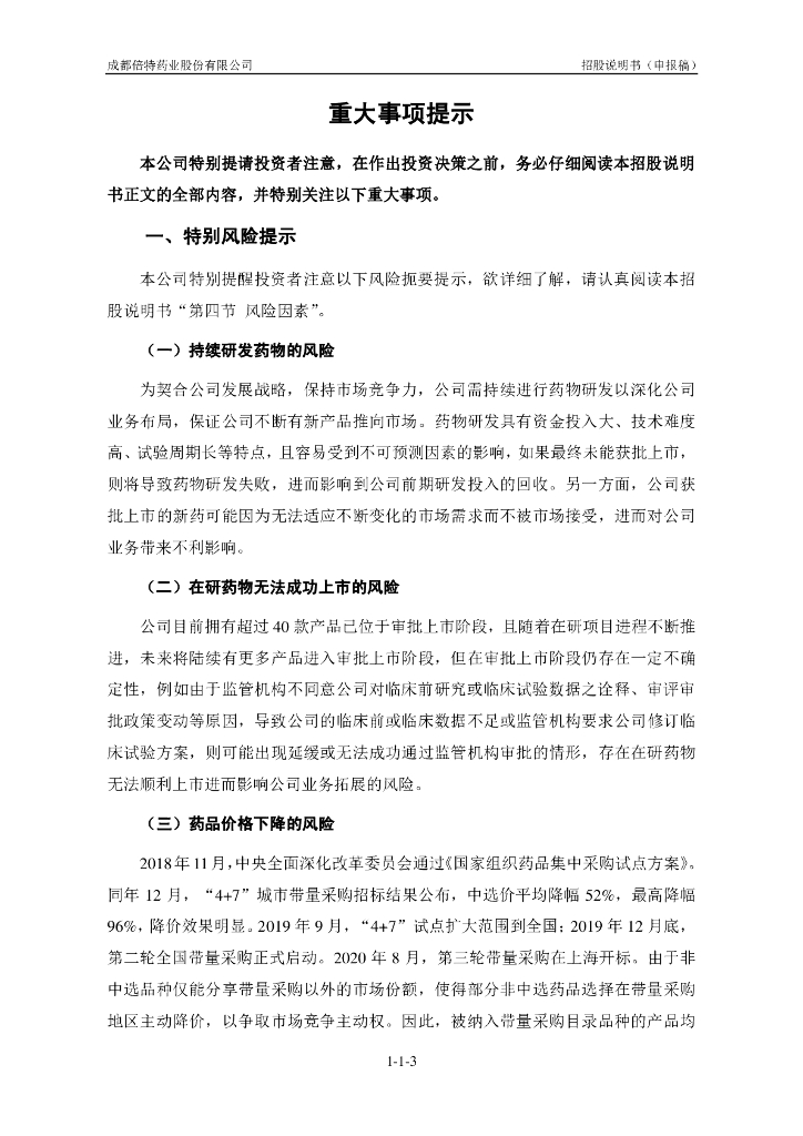 成都倍特药业股份有限公司深交所创业板IPO上市招股说明书.pdf