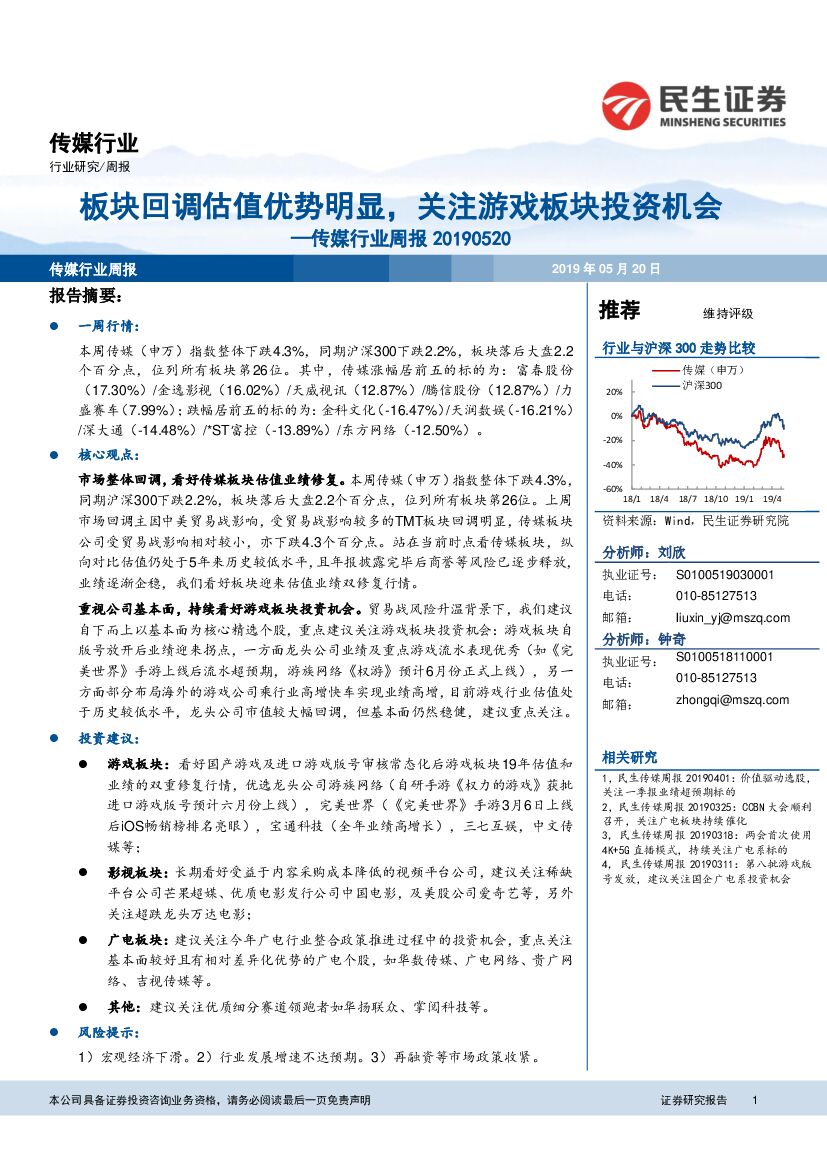 民生证券:传媒行业周报:板块回调估值优势明显,关注游戏板块投资机会.pdf