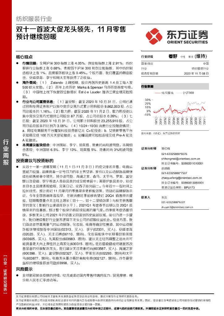 东方证券:纺织服装行业:双十一首波大促龙头领先,11月零售预计继续回暖.pdf